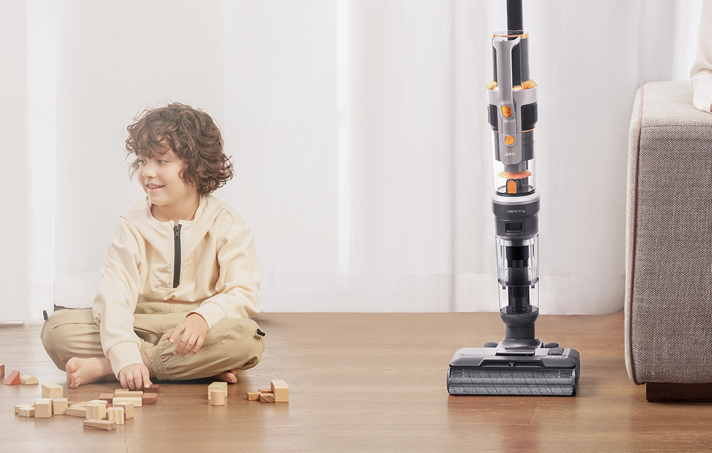 Teraz możesz odkurzać i myć podłogę bez większego wysiłku. Odkurzacz JIMMY HW10 Pro wyróżnia się ergonomiczną konstrukcją, a jego szczotka została wyposażona w dodatkowe kółka, co znacznie ułatwia jego prowadzenie i zapewnia większy komfort użytkowania. Co więcej, dzięki oddzielnym zbiornikom na brudną wodę i odpady nie musisz się martwić, że zanieczyszczenia ponownie znajdą się na dopiero co umytej podłodze.