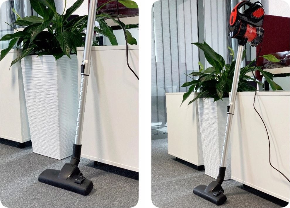 Całe urządzenie z główną szczotką waży zaledwie 2,5kg i ma niewielkie wymiary, a wszystkie części dodatkowo możemy rozłączyć! Użytkowanie i przechowywanie nie sprawia już żadnych problemów. Dzięki długiemu przewodowi oraz teleskopowej rurze odkurzacz ma duży zasięg pracy co pozwala na odkurzanie dużej powierzchni. Szczotka główna posiada mechanizm skręcający dzięki czemu bez problemu dotrzemy do wszystkich zakamarków, w których czai się brud.