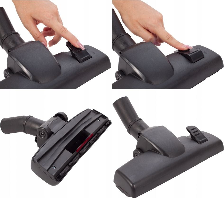 W głównej końcówce odkurzacza znajduje mechanizm dzięki któremu możemy wysunąć bądź włosie, w zależności od odkurzanej przez nas powierzchni. W każdej chwili, po uprzednim rozłączeniu od rączki z mechanizmem, możemy umyć zbiornik jak i filtry by dokładnie usunąć z nich resztkę zanieczyszczeń.