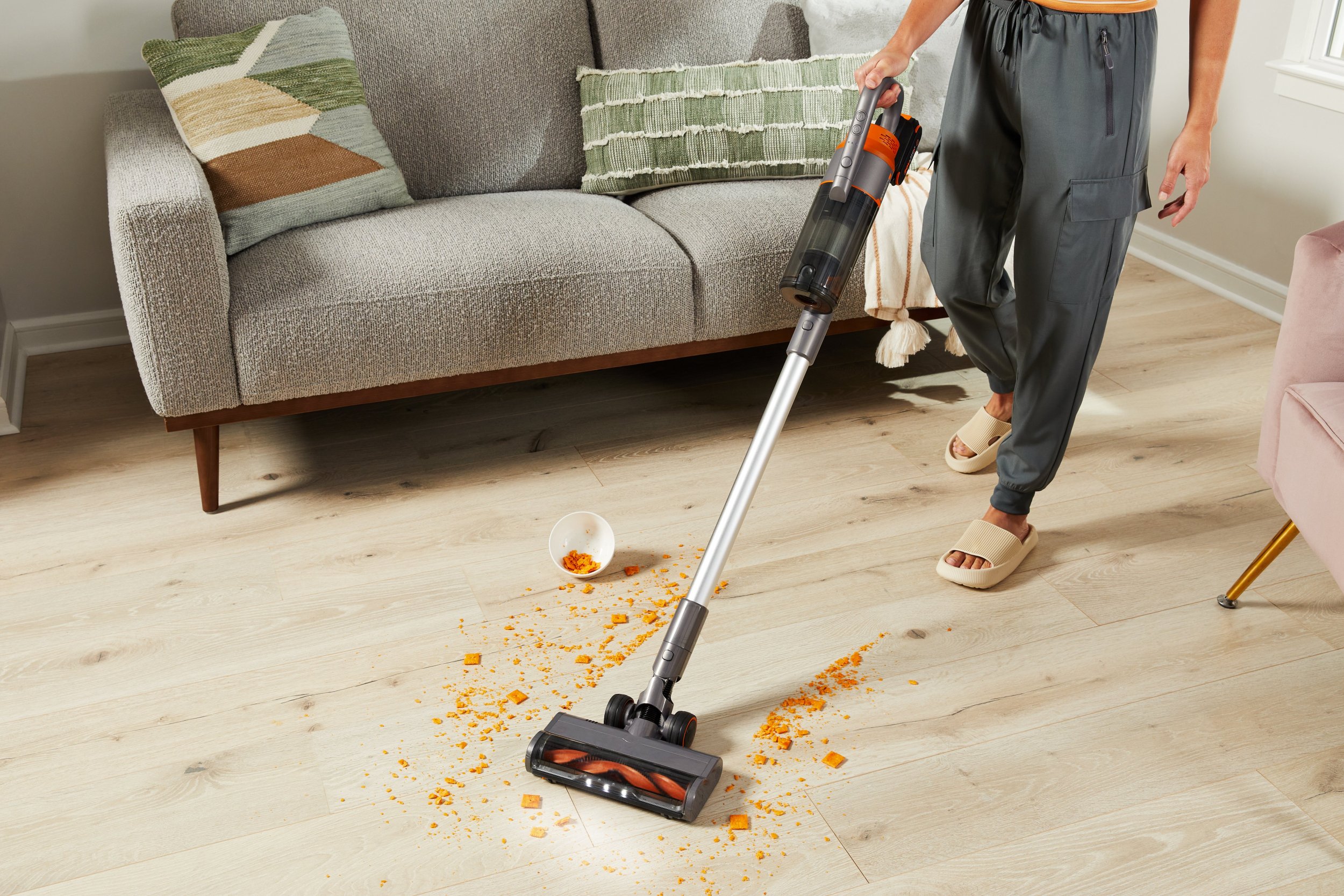 Dzięki zasilaniu akumulatorowemu odkurzacz działa wszędzie tam, gdzie nie można użyć klasycznego modelu sieciowego. Smukła, składana konstrukcja pozwala łatwo przechowywać urządzenie w pionie – w szafie, wnęce lub kącie pomieszczenia.
