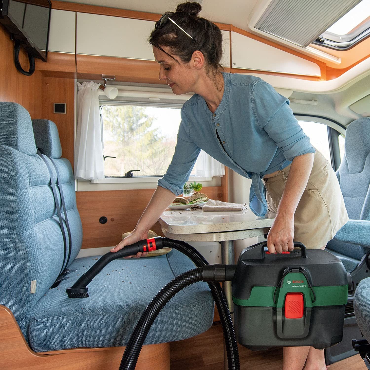 Przenośny model AdvancedVac 18V-8 to uniwersalny odkurzacz 3 w 1 przeznaczony do usuwania zanieczyszczeń oraz pompowania akcesoriów dmuchanych – w domu i na zewnątrz. Dzięki praktycznym akcesoriom szybko poradzisz sobie z usuwaniem mokrych i suchych zanieczyszczeń oraz pyłu, drobnych i większych odpadków w domu, ogrodzie, samochodzie lub kamperze. Odkurzacz można w łatwy sposób podłączyć do elektronarzędzi z oferty Home & Garden firmy Bosch lub innych producentów dzięki zastosowaniu uniwersalnego adaptera – pozwala aby zapewnić efektywną pracę.
