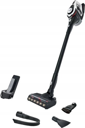 Odkurzacz BOSCH Unlimited 8 BCS82KA14 posiada ssawkę 2w1, długą ssawkę szczelinową, stację dokującą, kartę gwarancyjną oraz instrukcję obsługi.