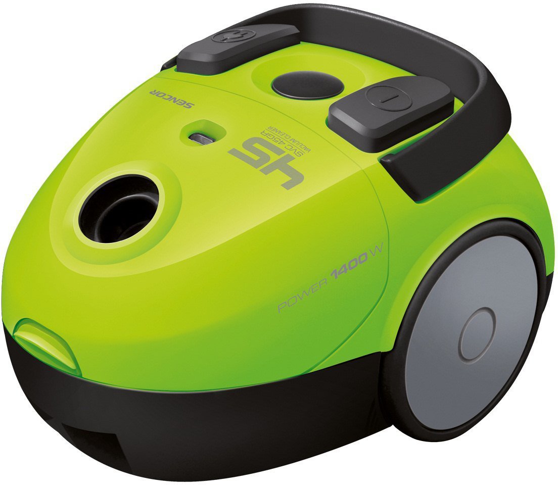 Odkurzacz workowy SVC 45 GR, marki Sencor, w kolorze zielonym, o mocy silnika 1400 W, sile ssania 230 W oraz o pojemność worka na kurz 1.5 litra. Urządzenie wyposażone zostało w gumowe kółka zapobiegające rysowaniu podłogi oraz w automatyczny zwijacz przewodu. Model SVC 45 GR posiada również 5 stopniowy system filtracji, wskaźnik informujący o zapełnieniu worka na kurz oraz kabel o długości 5 m, co daje zasięg działania odkurzacza do 7.5 m. W celu zapewnienia bezpieczeństwa produkt posiada termostat zabezpieczający silnik przed przegrzaniem.
