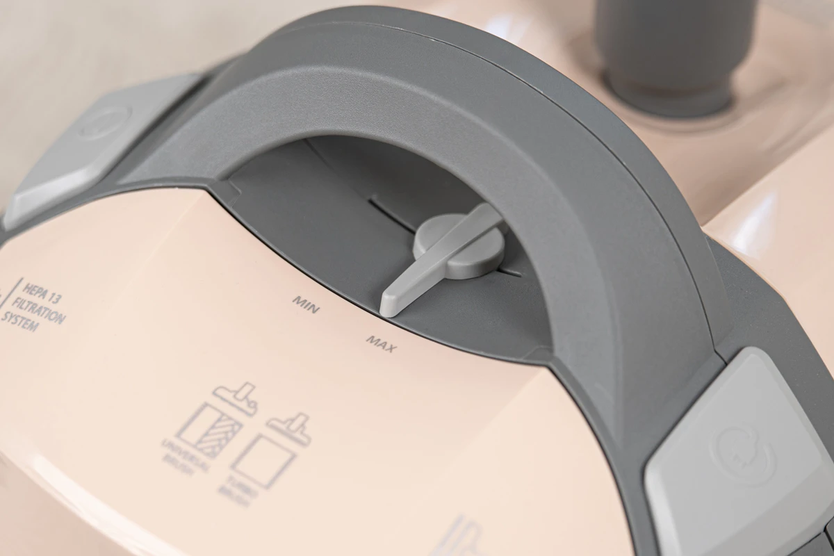 Dzięki płynnej regulacji mocy ssania możesz łatwo dostosować siłę odkurzacza do rodzaju sprzątanej powierzchni. Niska moc sprawdzi się przy delikatnych tkaninach czy firanach, a pełna moc przy usuwaniu zabrudzeń z grubych dywanów czy chodników. To elastyczność, która gwarantuje skuteczność w każdych warunkach.