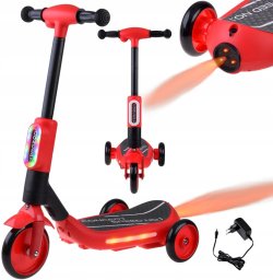 Hulajnoga w intensywnym czerwonym kolorze przyciąga wzrok i wyróżnia się na tle innych pojazdów. Jej nowoczesny wygląd sprawia, że każde dziecko pragnie ją mieć.