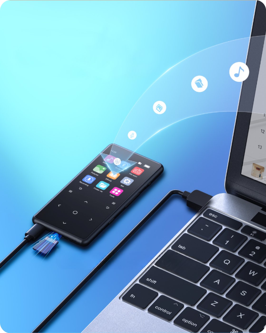 Dzięki wbudowanej funkcji Bluetooth 5.2, odtwarzacz muzyki MP3 oferuje bezprzewodową swobodę, pozwalając na łatwe parowanie z ulubionymi słuchawkami lub głośnikami. Ciesz się swoją muzyką bez ograniczeń kabli, z zachowaniem wysokiej jakości dźwięku i stabilności połączenia.
