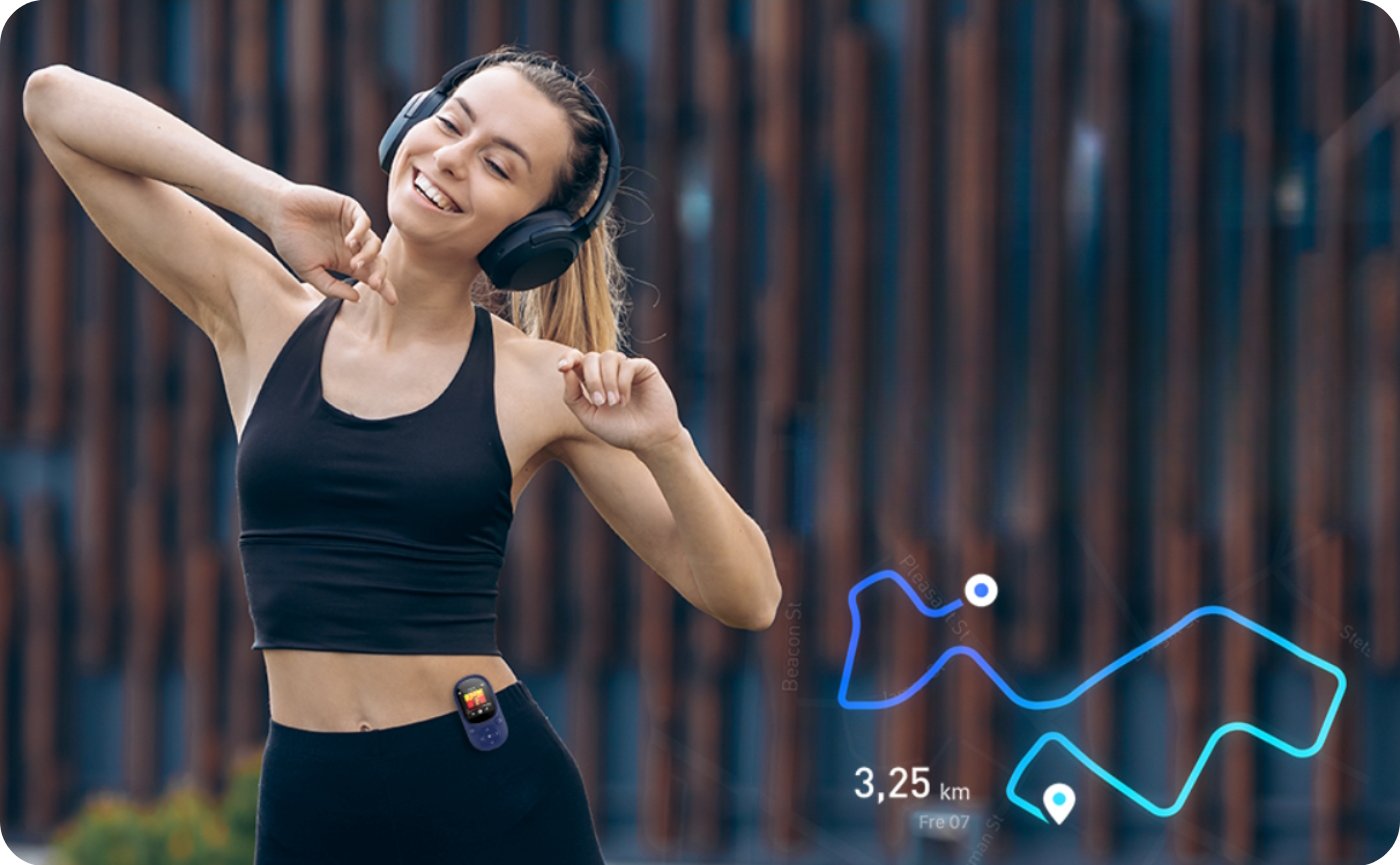 To nie tylko urządzenie do słuchania muzyki – to także Twój niezawodny towarzysz podczas aktywności fizycznej. Wbudowany krokomierz pozwala na dokładne śledzenie liczby kroków i pokonanej odległości, co czyni go idealnym narzędziem do motywowania się na co dzień. Stan liczby kroków jest wyświetlany na głównym obrazie urządzenia.