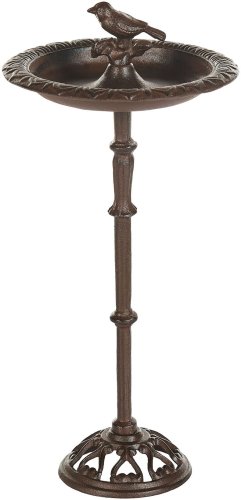 Ogrodowe poidło dla ptaków w stylu vintage. Dodaj charakteru swojemu ogrodowi z tym stylowym poidełkiem dla ptaków. Wykonane ręcznie z trwałego metalu i inspirowane stylem vintage, łączy estetykę z funkcjonalnością, tworząc idealne miejsce dla ptaków na odpoczynek i orzeźwienie. Zdobiona podstawa, dekoracyjny ptaszek i stabilna nóżka zapewniają nie tylko praktyczność, ale także elegancki i naturalny urok.