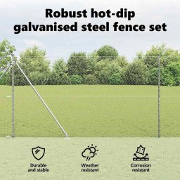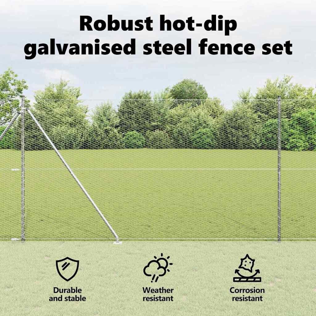 Ogrodzenie sześciokątne o wymiarach 1,6 x 10 m, wykonane z ocynkowanej stali, stanowi znakomite rozwiązanie do wydzielania przestrzeni na świeżym powietrzu. Jego nowoczesne jasnoszare wykończenie nie tylko tworzy solidną granicę, ale również podnosi estetykę ogrodu lub podwórka. To ogrodzenie jest idealne do wszelkich aktywności na zewnątrz, zapewniając bezpieczeństwo zarówno dzieciom, jak i zwierzętom.