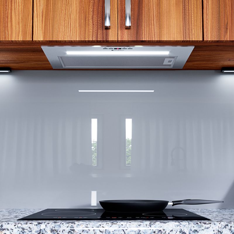 Okap do zabudowy Amadio posiada aż 4 stopnie wydajności, których głośność leży w przedziale od 48 do 66 dB. Oświetlenie w postaci paska LED o mocy 10 W jest energooszczędne i doskonale rozjaśnia miejsce pracy. Klawisze Soft Touch (łatwe i wygodne w obsłudze) wraz z praktycznym wyświetlaczem umożliwiają sterowanie sprzętem.