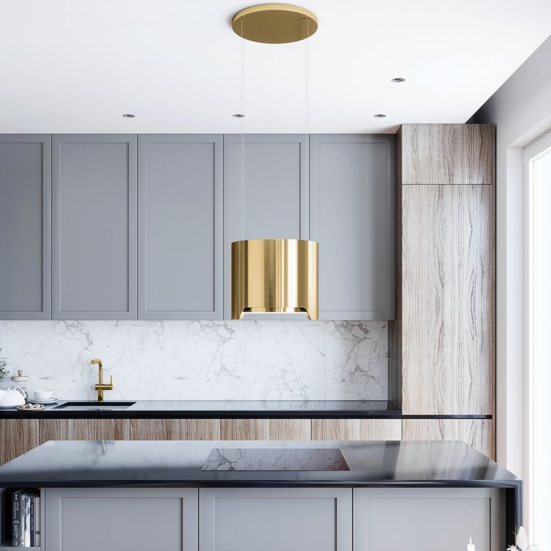 Spektakularna prezencja i doskonała wydajność. Okap wyspowy Arenoflow 39.2 Light Gold to absolutnie niezwykły element wyposażenia kuchennego wnętrza.