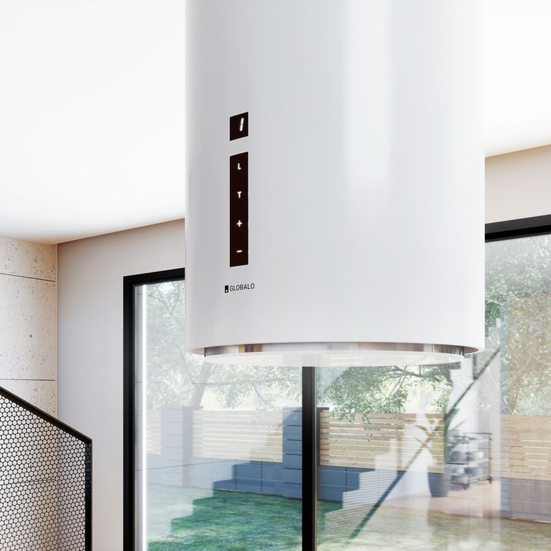 Cylindryczny okap wyspowy to efektowne urządzenie, dzięki któremu wyspa kuchenna będzie nie tylko ozdobą pomieszczenia, ale również komfortową powierzchnią roboczą, znakomicie przystosowaną do przygotowywania posiłków.