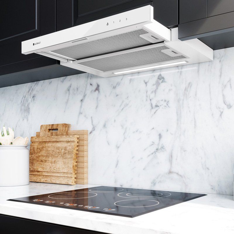 - Z racji kompaktowych kształtów (szer. 59,6 cm, gł. 28,5 cm) okap kuchenny Wineter 60.2 White doskonale sprawdzi się we wnętrzach o niewielkim metrażu.