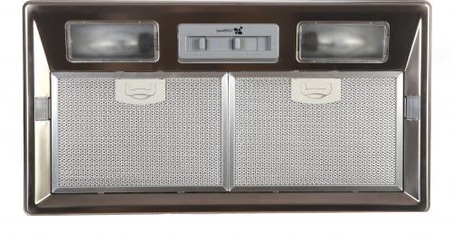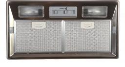 Spód okapu wykonany ze stali nierdzewnej pokrytej specjalną powłoką zapobiegającą pozostawianiu odcisków palców, dzięki czemu powierzchnia jest zawsze błyszcząca i łatwiejsza w czyszczeniu oraz kilku małych elementów z polipropyleny w kolorze szarym. Występuje w dwóch rozmiarach 52 cm oraz 70 cm. Oświetlenie LED 2 x 2,8 W. Sterowanie suwakowe, trzy stopnie mocy, niezależne od pracy okapu sterowanie oświetleniem. Tryb pracy wyciąg lub pochłaniacz.