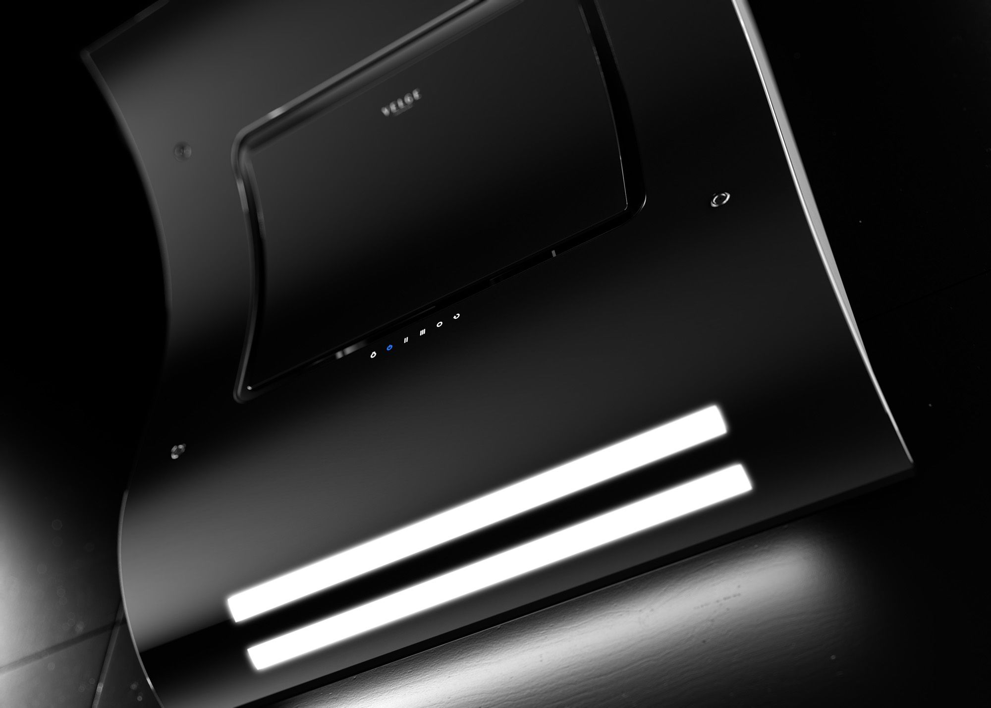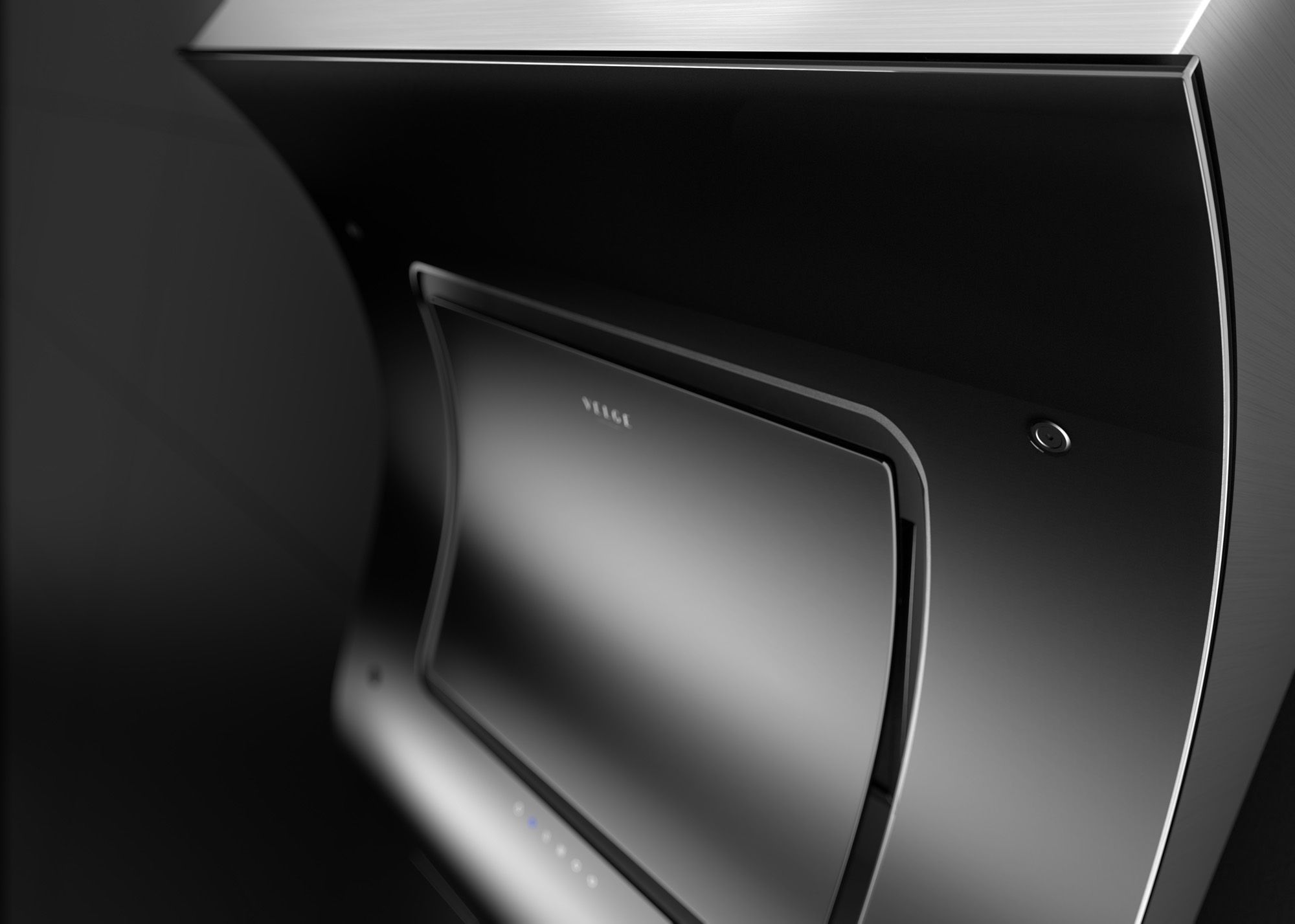 - Wygląd: okap ten posiada unikalny front wykonany z giętego szkła.