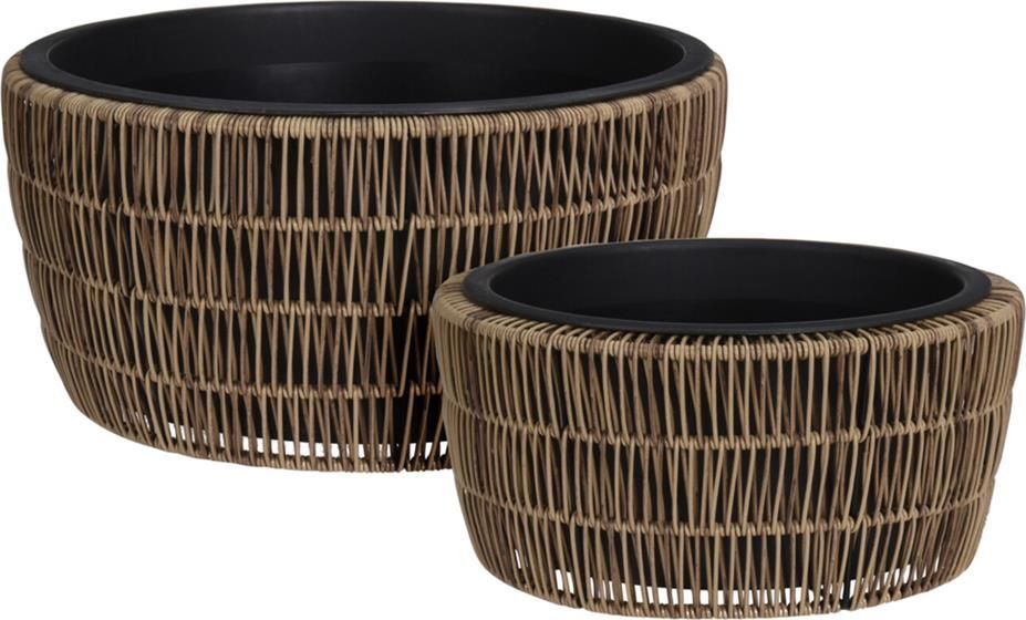 Donica pleciona, kosz na kwiaty, z wyjmowanym wkładem, wykonana z trwałego polyrattanu, komplet 2 szt, wymiary: 44x22; 36x18 cm