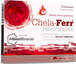 Potrzebujesz uzupełnić dietę w wysokiej jakości żelazo? Postaw na żelazo nowej generacji w Chela-Ferr® Bio-Complex! Jeden z topowych produktów sprzedażowych marki Olimp Labs zawiera najlepiej przebadany na polskim rynku1 chelat żelaza - Ferrochel™, będący opatentowaną formą żelaza niehemowego. Żelazo, które jest niezbędnym składnikiem białek hemowych i pomaga w prawidłowej produkcji czerwonych krwinek, w suplemencie diety OlimpChela-Ferr® Bio-Complex występuje w postaci wysoko przyswajalnego i odpornego na kwaśne pH żołądka chelatu aminokwasowego Albion™ (diglicynian żelaza). To niewątpliwie jedna z wielu zalet preparatu, któremu zaufały miliony osób na całym świecie!