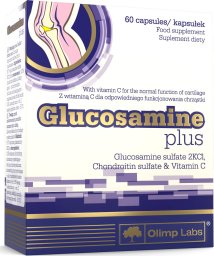 Olimp Glucosamine Plus to suplement diety w postaci łatwych do połknięcia kapsułek, zawierający siarczan glukozaminy, siarczan chondroityny oraz witaminę C.