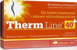 Olimp Therm Line® 40+ to suplement diety w formie tabletek powlekanych, zawierający kompozycję wysokiej jakości składników roślinnych, dodatkowo uzupełnionych działającą pobudzająco kofeiną oraz chromem. Spalacz tłuszczu z popularnej linii Therm Line®stanowi doskonałe wsparcie, jako dodatek do zbilansowanej diety dla osób, które chcą wymodelować sylwetkę i kontrolować masę ciała.
