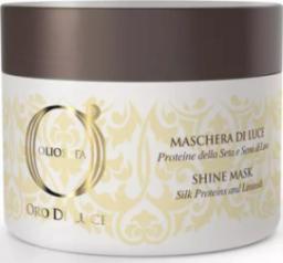 Maska Oro Di Luce Shine to bogata i kremowa, prawdziwie nabłyszczająca kuracja, ultra odżywcza i restrukturyzująca włosy. Zapewnia natychmiastowy blask, ułatwiając domknięcie łusek, zapewniając gładkie i łatwe do rozczesania włosy.