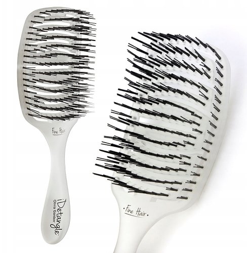 Szczotka iDetangle Fine Hair bezboleśnie usuwa pętelki i supły, tworząc gładką taflę. Nie szarpie, nie ciągnie ani nie rwie włosów, co sprawia, że jest idealna zarówno do włosów mokrych, jak i suchych. Dzięki 11 rzędami włosia, zapewnia efektywne rozczesywanie, które nie narusza struktury delikatnych pasm.