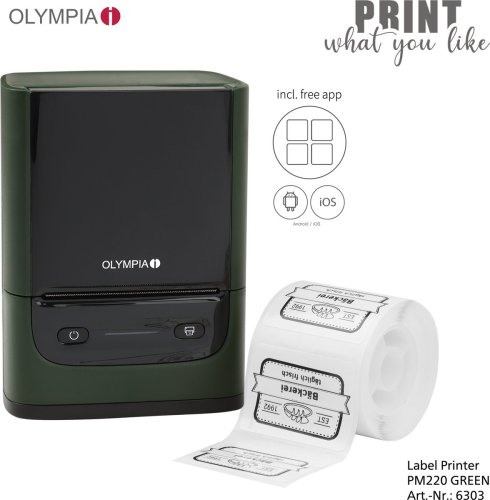 Drukarka etykiet Olympia PM 220 umożliwia łatwe łączenie się z aplikacją mobilną za pośrednictwem Bluetooth. Dzięki temu projektowanie etykiet staje się prostsze i bardziej wygodne, a użytkownicy mogą tworzyć etykiety bezpośrednio z telefonu lub tabletu.