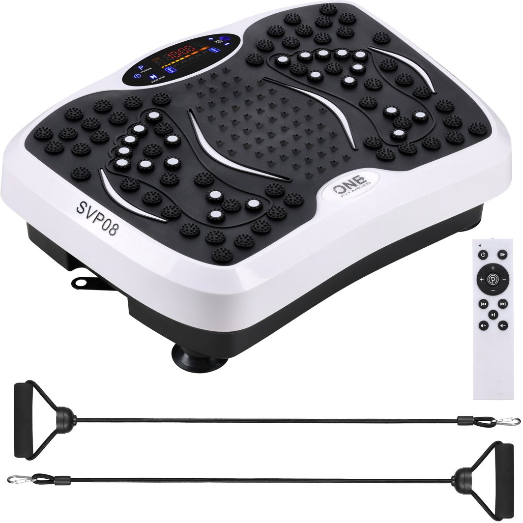 W zestawie z platformą znajdują się gumy treningowe, które umożliwiają jednoczesny trening górnych i dolnych partii ciała. Dzięki temu, SVP08 staje się wszechstronnym urządzeniem do ćwiczeń siłowych i modelujących sylwetkę, co sprawia, że każdy użytkownik znajdzie coś dla siebie.