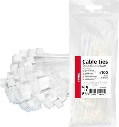 Opaski zaciskowe białe 2.5×150mm 100 szt. amio-04306