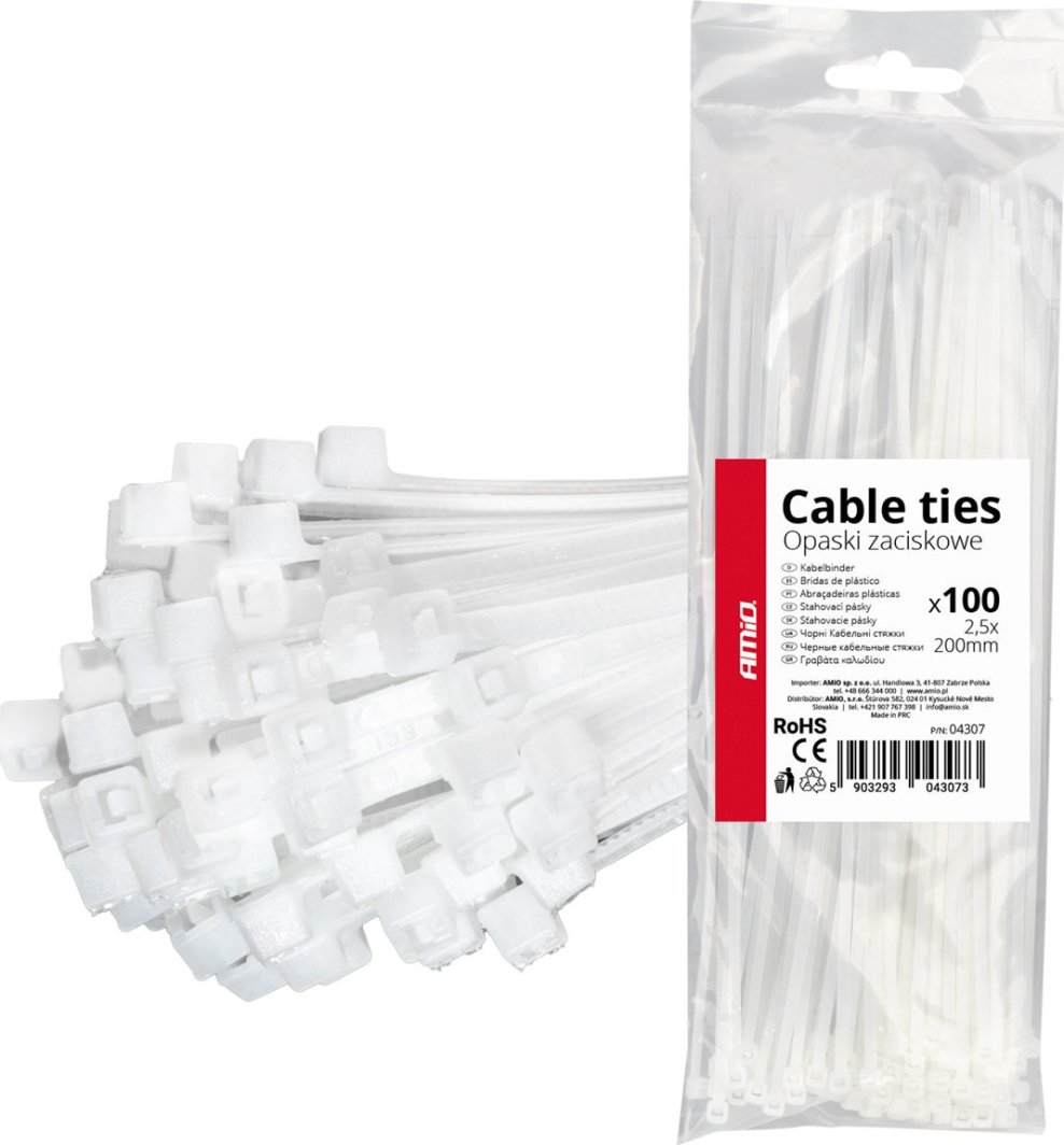 Opaski zaciskowe białe 2.5×200mm 100 szt. amio-04307