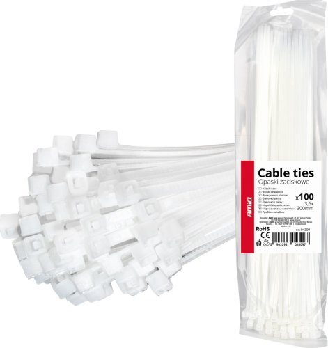 Opaski zaciskowe białe 3.6×300mm 100 szt. amio-04309