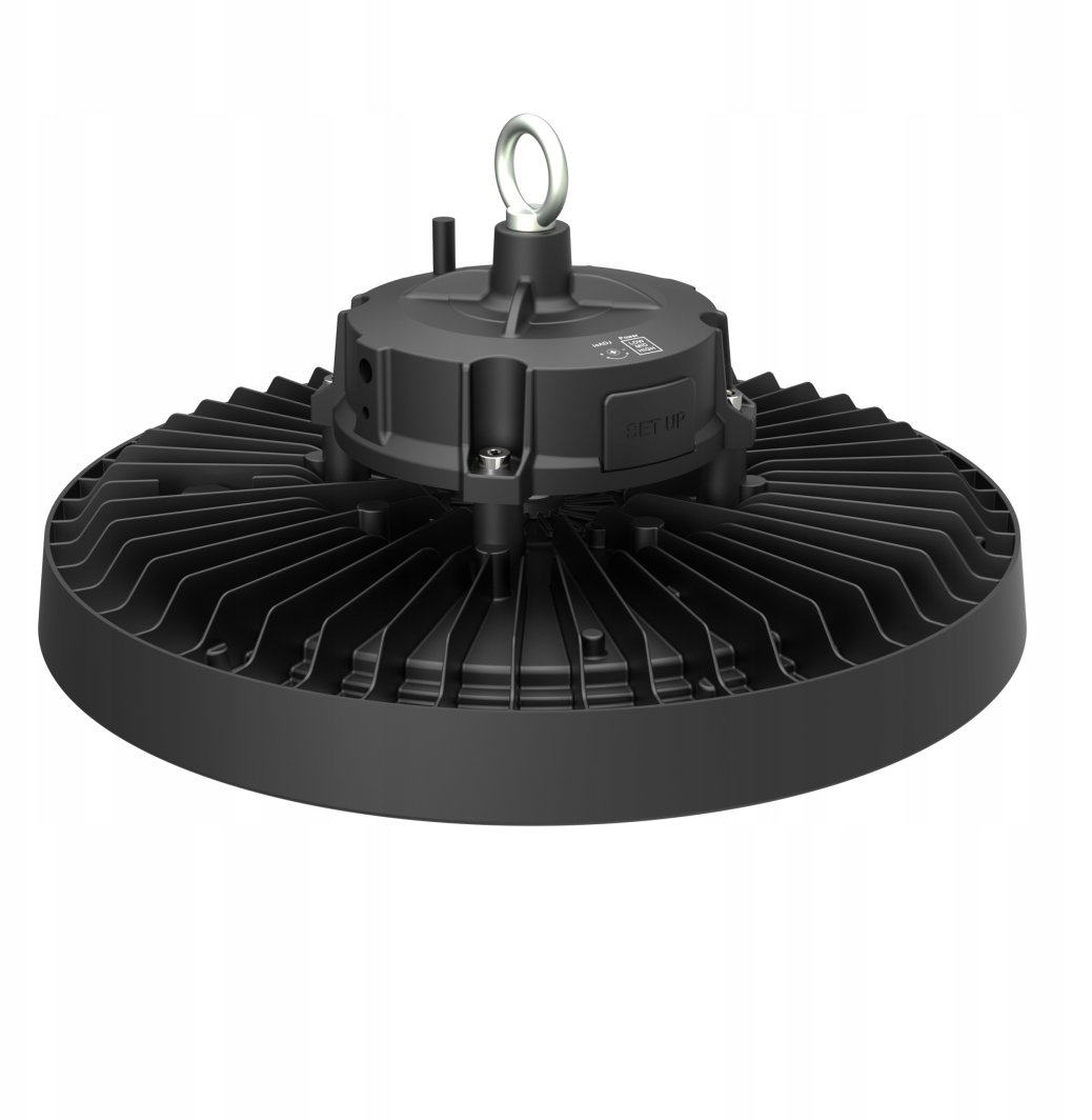 Oprawa High-Bay Slim Light Design UFO LED o mocy 150W to nowatorskie rozwiązanie, które spełnia wymagania współczesnych przestrzeni przemysłowych oraz komercyjnych. Jej elegancki, czarny kolor i kompaktowe wymiary sprawiają, że doskonale wpasowuje się w różnorodne aranżacje wnętrz.