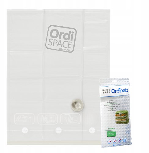 Worek próżniowy Ordispace Cube o wymiarach 55x75x40 cm, model 1231118, to znakomity wybór dla tych, którzy szukają efektywnego sposobu na przechowywanie odzieży, koców oraz innych tekstyliów. Dzięki swojej konstrukcji, ten worek umożliwia długotrwałe przechowywanie, skutecznie chroniąc zawartość przed kurzem i wilgocią.
