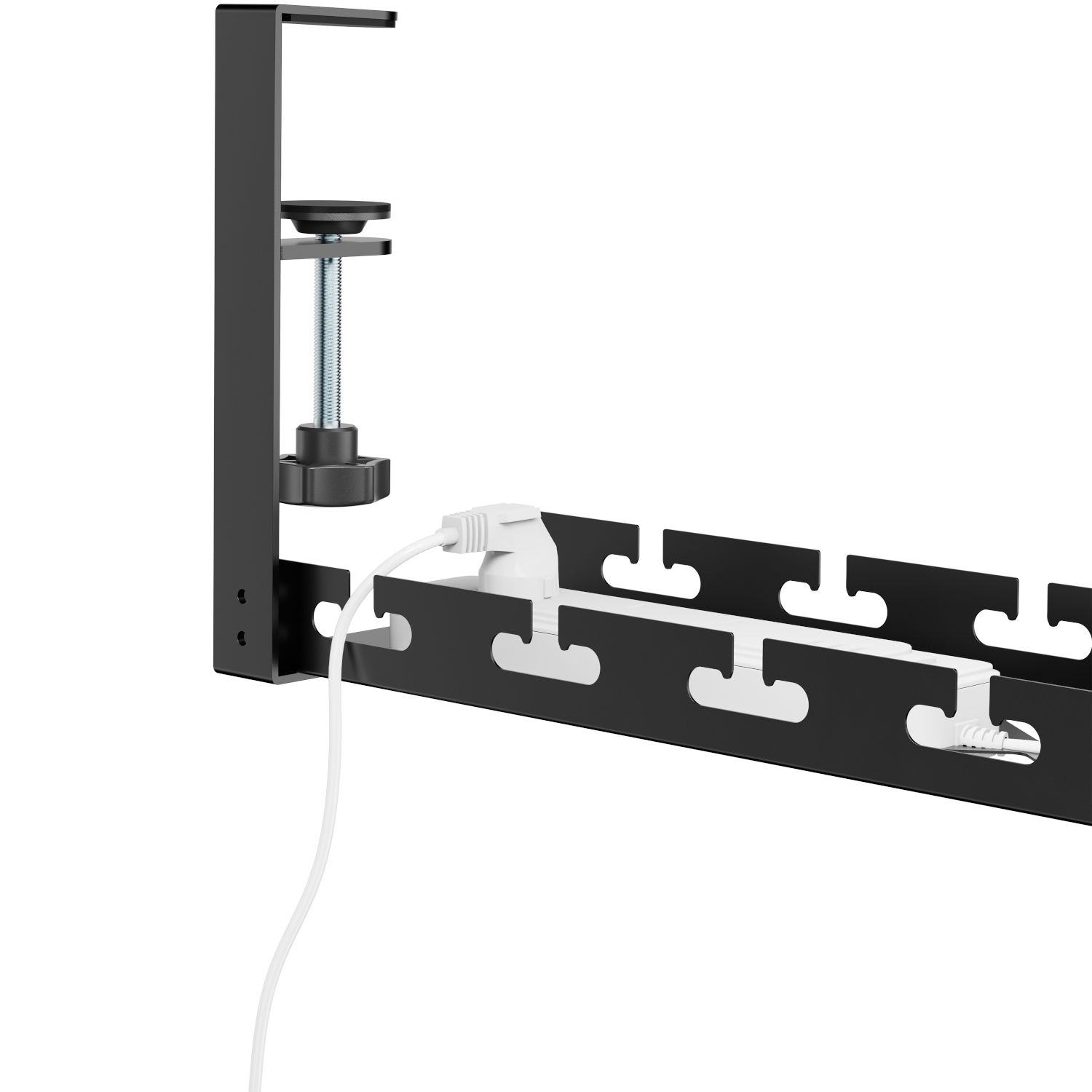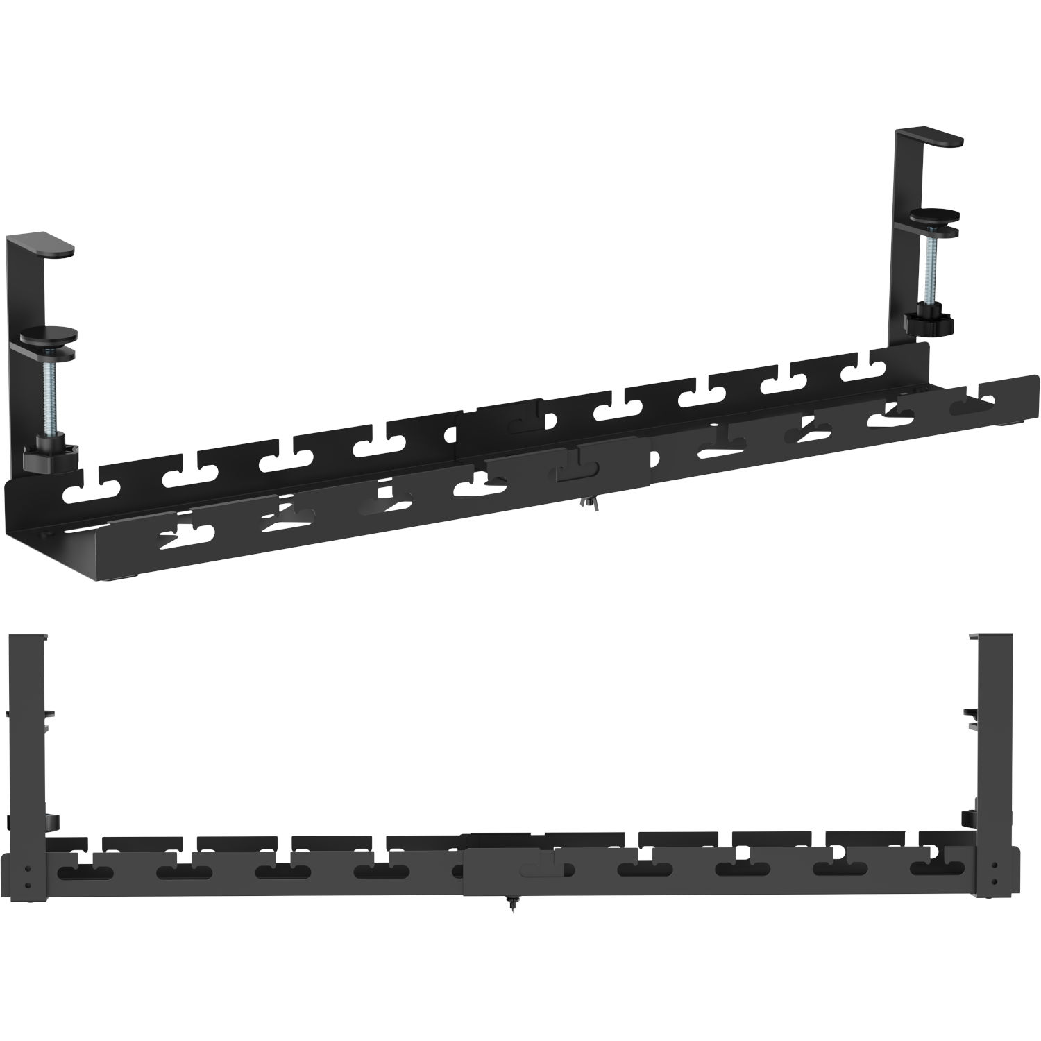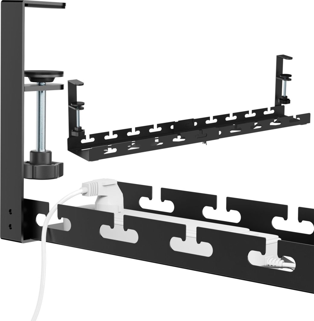 Mozos UCM-3-Bk to nowoczesna i funkcjonalna tacka do zarządzania kablami, montowana pod biurkiem. Zapewnia wygodne i estetyczne rozwiązanie pozwalające na uporządkowanie przewodów, eliminując plątaninę kabli i zwalniając cenną przestrzeń na blacie roboczym. Dzięki rozsuwanej konstrukcji doskonale dopasowuje się do różnych rozmiarów biurek i zróżnicowanych potrzeb użytkowników. Montaż tacki Mozos UCM-3-Bk jest niezwykle prosty i nie wymaga wiercenia. Mocne uchwyty zaciskowe gwarantują stabilne i bezpieczne przymocowanie do blatu, co pozwala na przechowywanie kabli, listw zasilających i adapterów w sposób uporządkowany i niewidoczny. Specjalne otwory na przewody utrzymują je w jednym miejscu, zapobiegając ich splątaniu oraz ułatwiając ich organizację.
