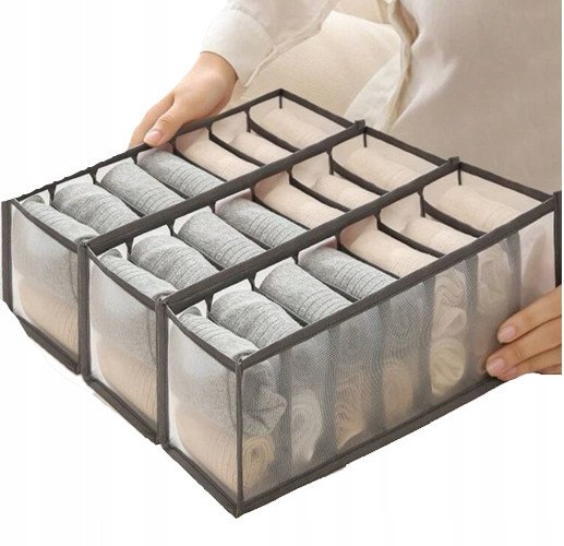 Przedstawiamy organizer na skarpetki i bieliznę, który składa się z trzech praktycznych elementów. To doskonałe rozwiązanie do przechowywania skarpetek, bielizny oraz innych drobnych akcesoriów, które pomoże Ci w utrzymaniu porządku w szafie.