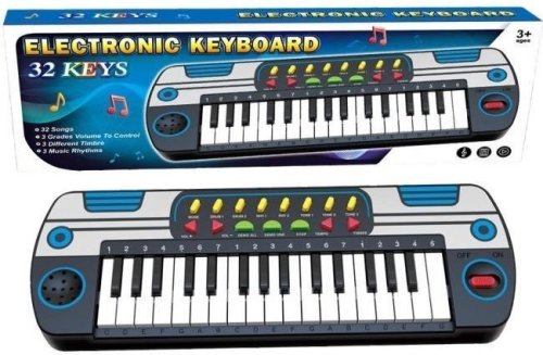 Zanurz się w fascynujący świat dźwięków z naszym 32-klawiszowym elektronicznym keyboardem! To doskonały instrument dla dzieci i wszystkich, którzy dopiero rozpoczynają swoją muzyczną przygodę. Ten kompaktowy i łatwy w obsłudze keyboard oferuje szeroki wachlarz funkcji, które rozbudzą kreatywność i muzyczną wyobraźnię. Do dyspozycji masz aż 32 wbudowane melodie demonstracyjne, które mogą posłużyć jako inspiracja lub akompaniament do własnych kompozycji. Trzy poziomy regulacji głośności pozwalają dostosować dźwięk do otoczenia, a trzy różne barwy dźwięku (np. pianino, organy, skrzypce) urozmaicą Twoje muzyczne eksperymenty. Dodatkowo, trzy różne rytmy akompaniamentu dodadzą dynamiki Twoim utworom. Keyboard jest lekki i przenośny, dzięki czemu można go zabrać wszędzie. Zasilany jest bateriami (brak w zestawie), co zapewnia swobodę użytkowania bez konieczności podłączania do gniazdka. Intuicyjny panel sterowania z wyraźnie oznaczonymi przyciskami sprawia, że obsługa jest prosta i przyjemna dla użytkowników w wieku 3 lat i starszych. To idealny prezent, który rozwija słuch muzyczny, koordynację ruchową i pasję do muzyki.