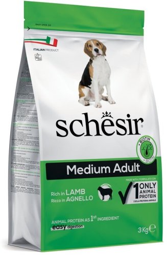 Karma Schesir Suchy Pies Medium Adult Jagnińcina 3kg to znakomity wybór dla dorosłych psów średnich ras. Oparta na wysokiej jakości jagnięcinie, ta pełnoporcjowa karma dostarcza wszystkich niezbędnych składników odżywczych, które wspierają zdrowie i kondycję Twojego pupila. Dzięki lekkostrawnej formule, Twój pies będzie mógł cieszyć się smakiem i pełnią energii każdego dnia.