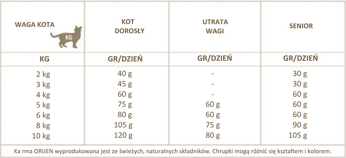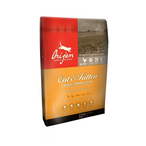 Biologicznie Odpowiednia karma ORIJEN CAT & KITTEN przepełniona jest mięsem kurczaka i indyka, całymi jajami oraz mięsem ryb poławianych w naturalnym środowisku. Składniki te są dostarczane codziennie ŚWIEŻE, pełne wartości odżywczych.