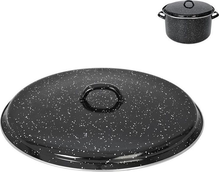 - Pokrywka emaliowana w czarnym kolorze, wewnątrz granatowa.