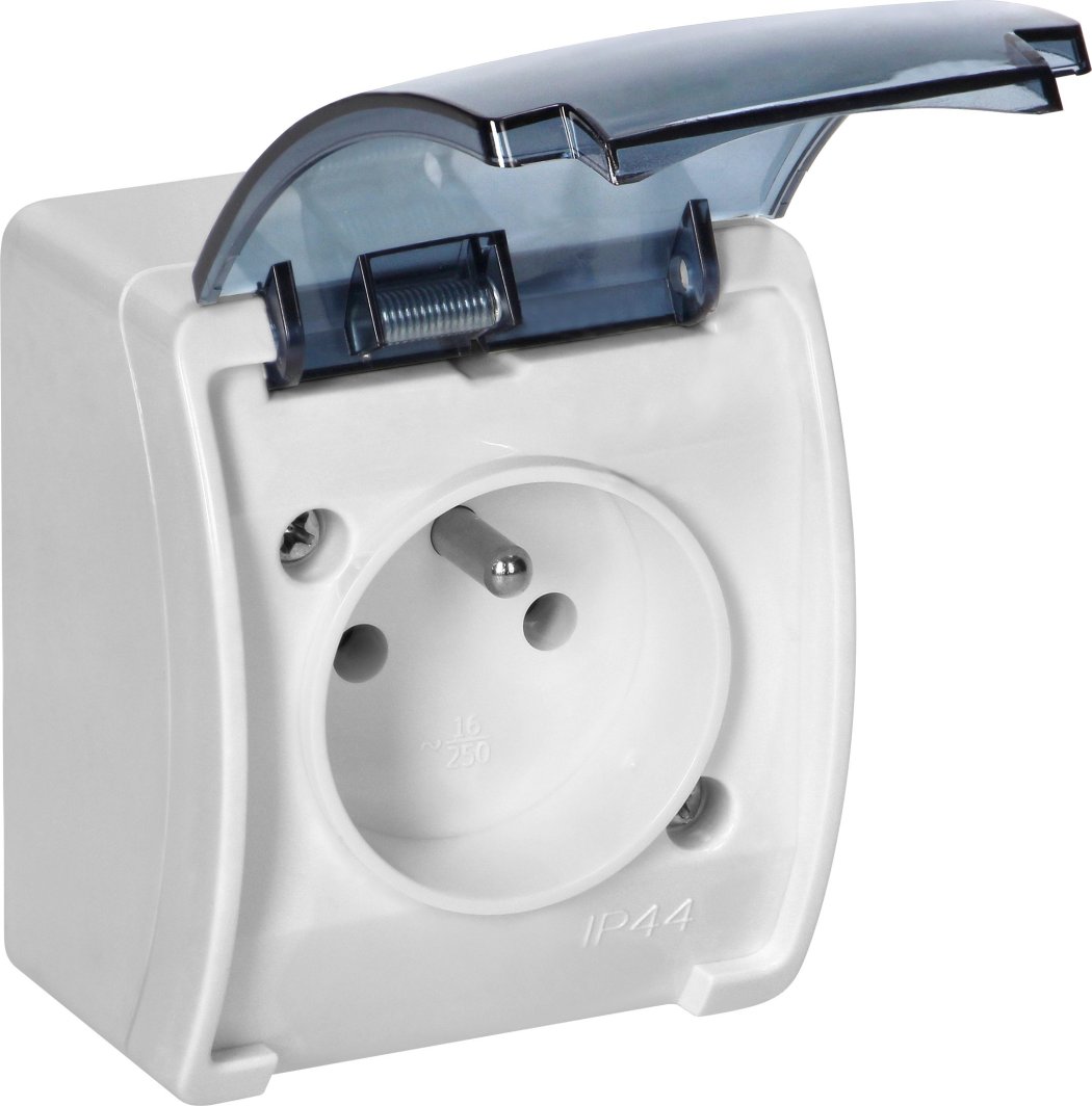 Gniazdo pojedyncze 2P+Z AQUATIC, IP44, białe dymione