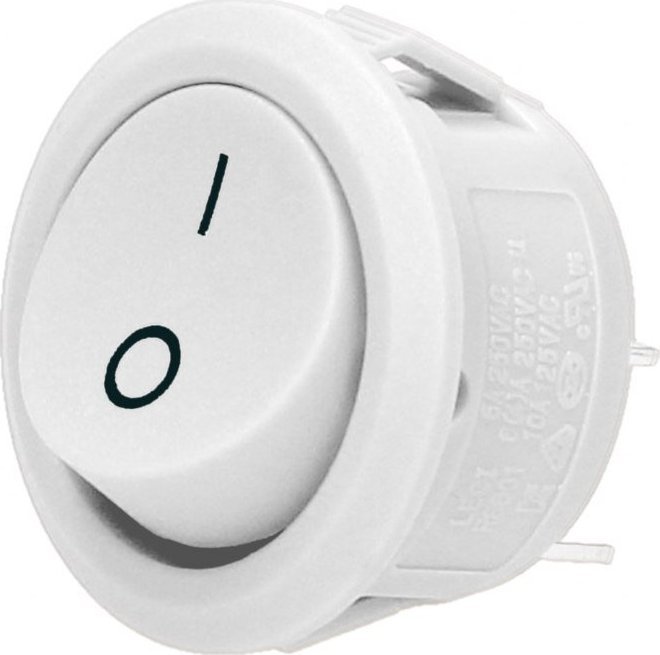 Okrągły przycisk w kształcie kołyski, w którym poszczególne pozycje oznaczają jego różne stany. Element najczęściej wykorzystywany jest jako włącznik lub wyłącznik różnych urządzeń elektrycznych. Dostępne kolory: czarny, biały, szary.