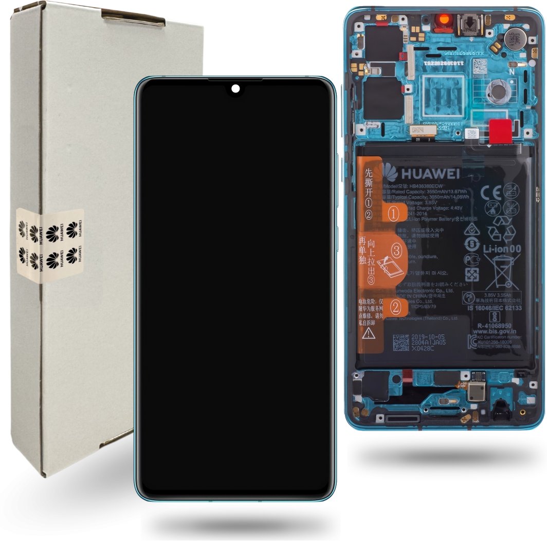 Oryginał Wyświetlacz Huawei P30 Service Pack LCD ELE-L29 Aurora Blue Ramka