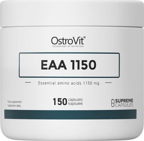 EAA z ang. essential amino acids to grupa organicznych związków chemicznych (aminokwasów), które są podstawowymi "puzzlami" do budowy peptydów i białek. Nasz organizm niestety nie jest w stanie samodzielnie ich syntetyzować (produkować), więc tak ważne jest, aby dostarczać je wraz z prawidłową dietą lub z pomocą suplementacji. W składzie znajdziemy kompleks BCAA, czyli trzech aminokwasów długołańcuchowych: leucyny, waliny i izoleucyny oraz takie związki jak: lizyna, treonina, fenyloalanina, metionina, arginina, histydyna oraz tryptofan. Kompleks OstroVit Supreme Capsules EAA 1150 dzięki aminokwasom białkowym wspierają regenerację oraz procesy anaboliczne naszych komórek mięśniowych. Komponenty suplementu przyczyniają się do wspierania oraz same bezpośrednio uczestniczą w szeregu procesów życiowych organizmu, wspierając układ immunologiczny, nerwowy oraz trawienny.