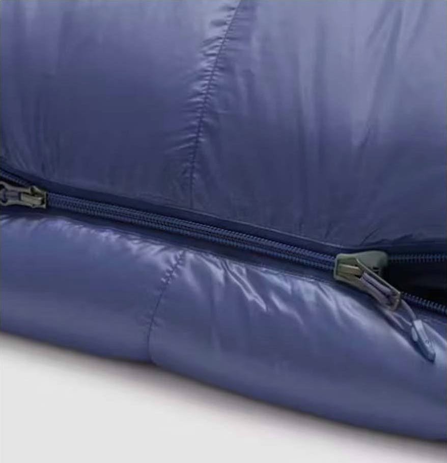 Śpiwór został wyposażony w pełny zamek błyskawiczny po lewej stronie oraz krótszy zamek po prawej, co ułatwia wentylację i umożliwia wykonywanie różnych czynności wewnątrz, takich jak przygotowywanie posiłków. To praktyczne rozwiązanie sprawia, że korzystanie z niego jest jeszcze bardziej komfortowe.