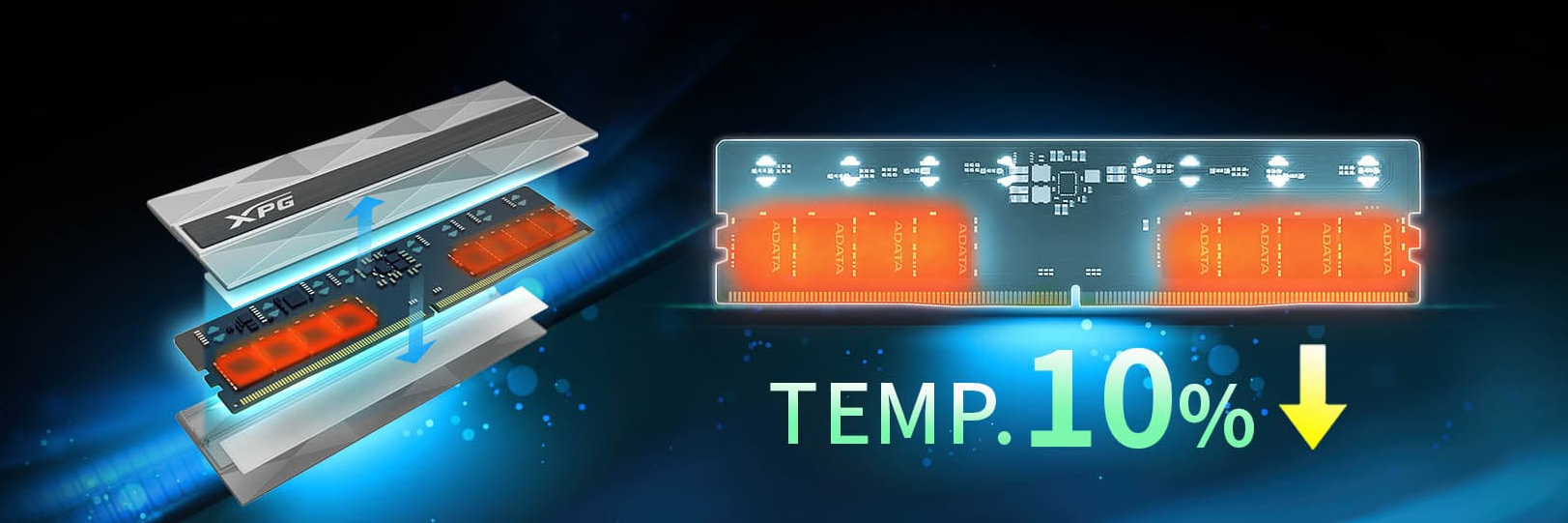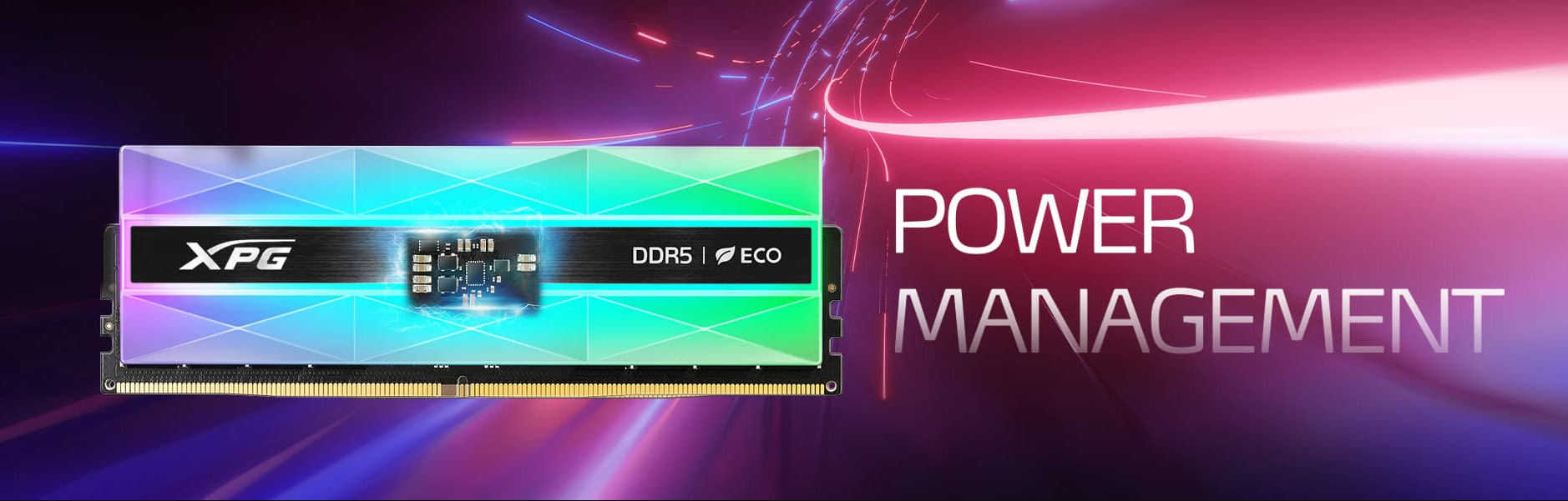 Moduł pamięci DDR5 XPG LANCER NEON RGB ma wbudowany układ scalony zarządzania zasilaniem (PMIC), który zwiększa stabilność zasilania. Dzięki niższemu napięciu roboczemu moduł LANCER jest także bardziej energooszczędny niż pamięć DDR4.