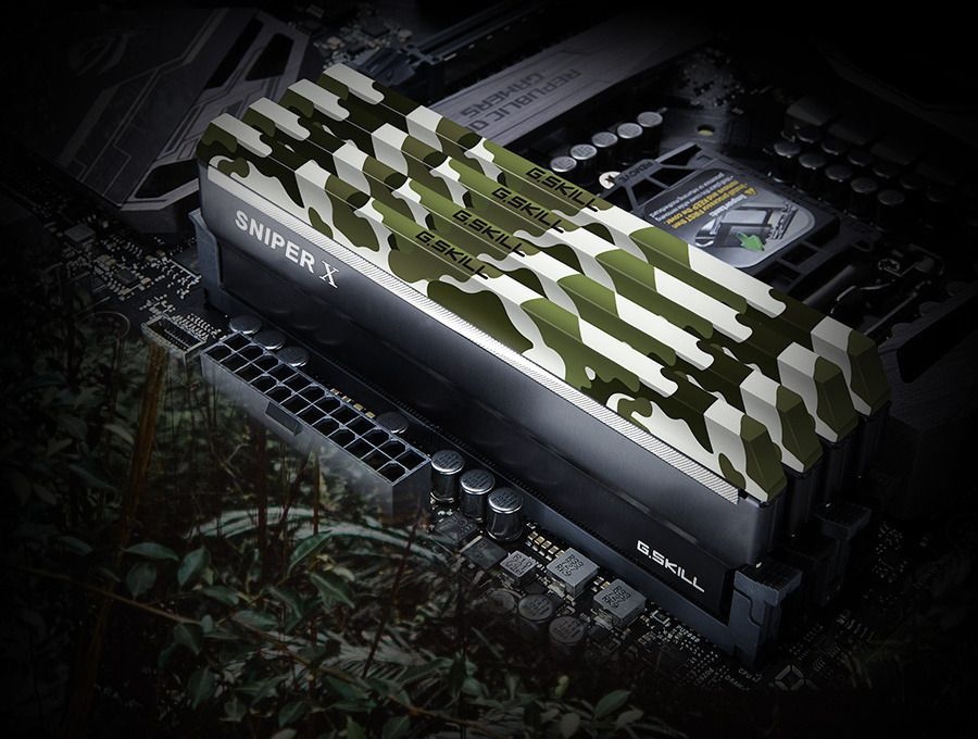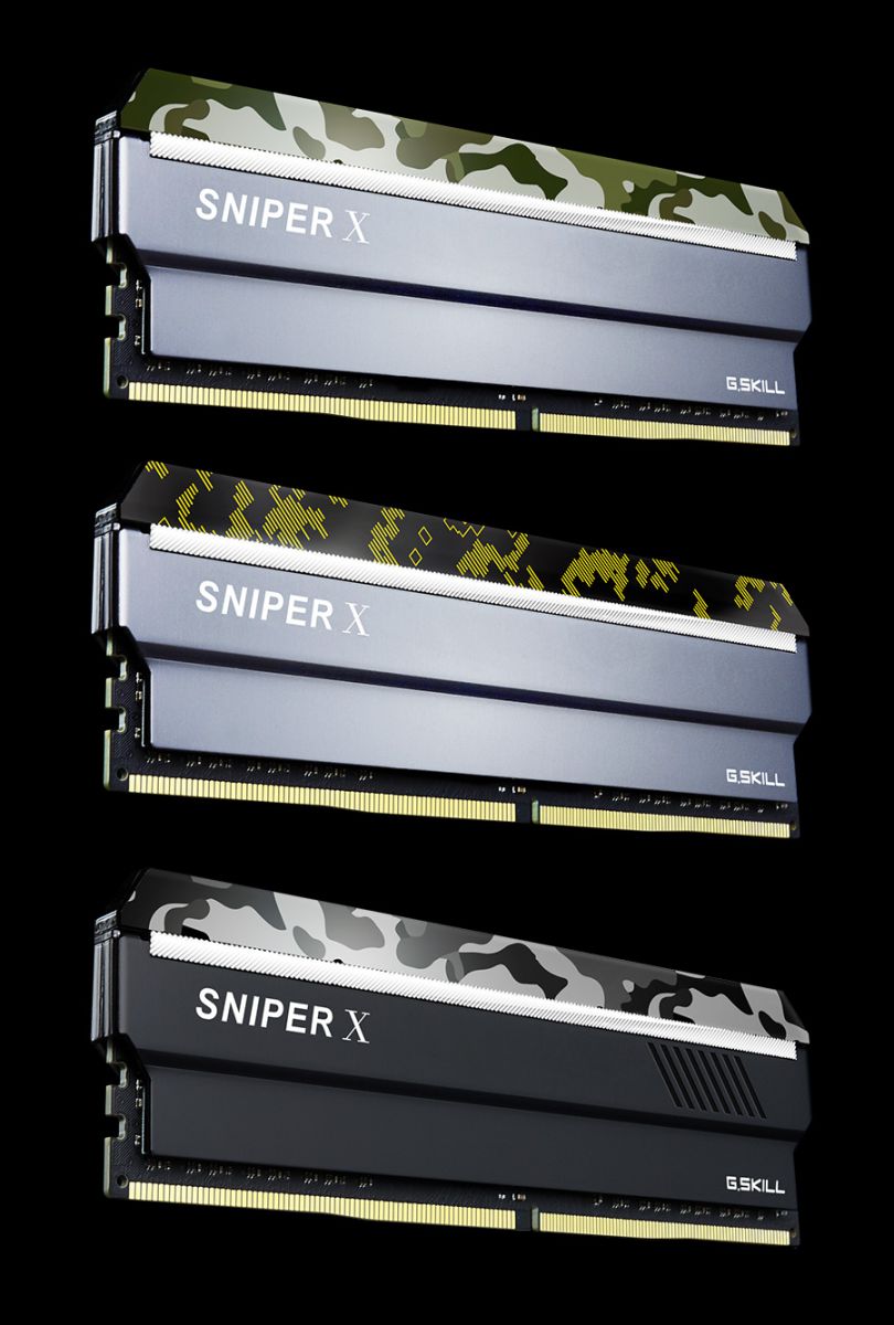 Moduły pamięci Sniper X są wyposażone w charakterystyczny górny pasek w kamuflażu wojskowym w trzech wersjach kolorystycznych.