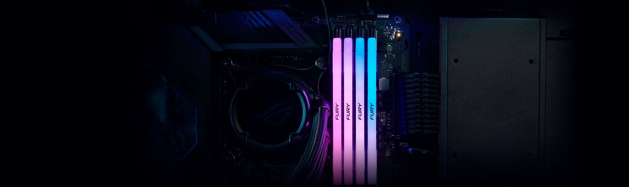 Ożyw swój system dzięki 18 predefiniowanym efektom świetlnym RGB1, wykorzystującym oprogramowanie Kingston FURY CTRL lub oprogramowanie producenta płyty głównej oraz eleganckiemu, nowo zaprojektowanemu czarno-srebrnemu lub biało-srebrnemu aluminiowemu radiatorowi i dopasowanej do niego czarnej płytce PCB.