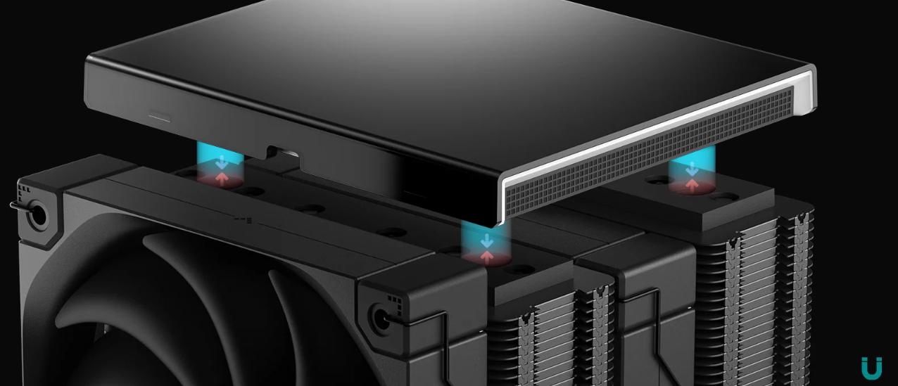 Magnetyczny panel górny AK620 DIGITAL PRO został również ulepszony o punkt styku pogo pin i pad, co znacznie upraszcza instalację najlepiej sprzedającej się bestii typu twin tower firmy DeepCool.