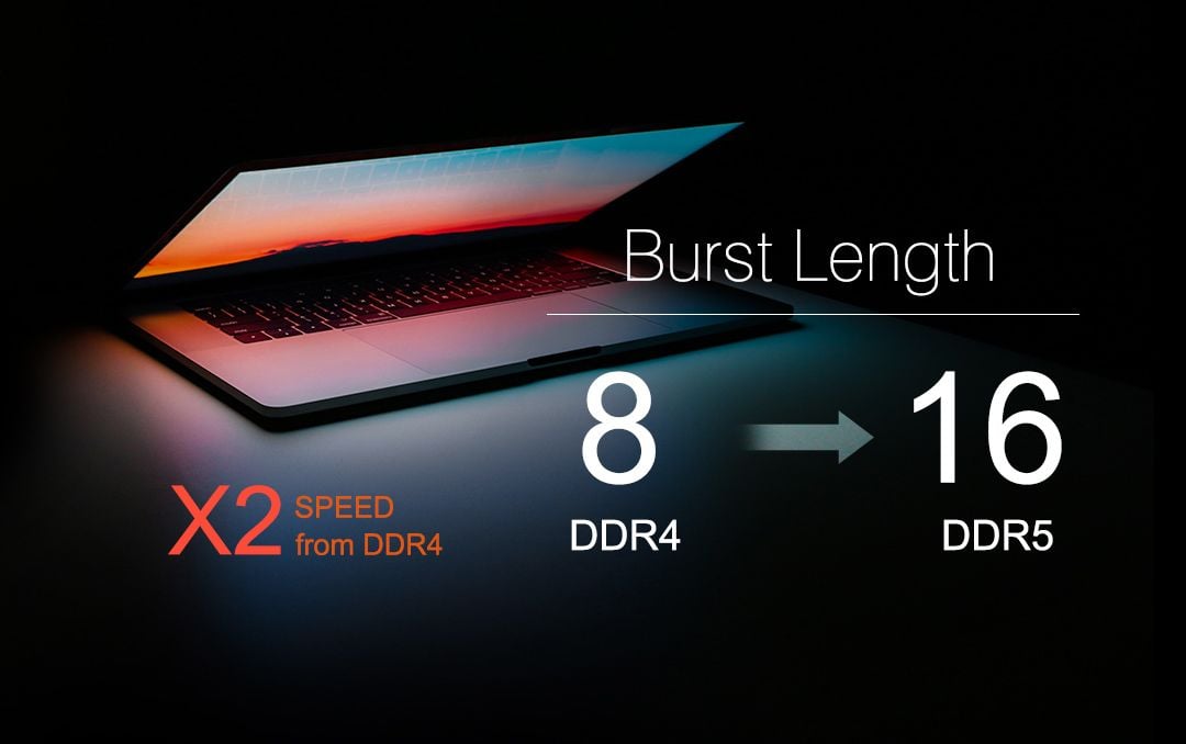 To nie wszystko, co zostało podwojone – minimalna długość serii w tym module DDR5 wynosi do 16, w porównaniu z 8 w przypadku DDR4. Poprawia to wydajność magistrali danych, zapewniając dwukrotnie większą ilość danych na magistrali, a w konsekwencji zmniejsza liczbę odczytów/zapisów w celu uzyskania dostępu do tej samej linii danych pamięci podręcznej.
