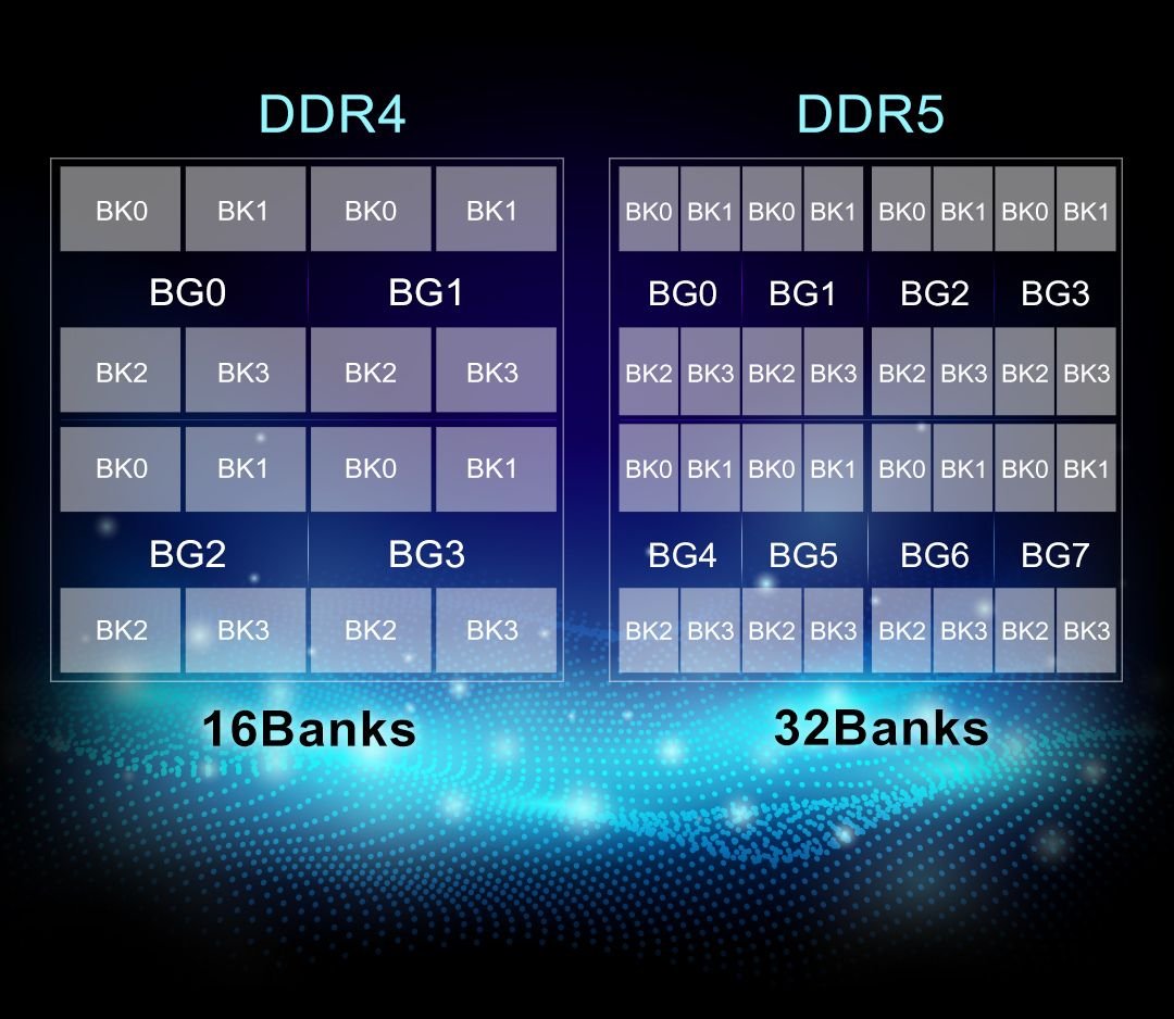 W porównaniu z pojemnością modułu chipowego DDR4 o pojemności 16 GB, ten moduł DDR5 podwaja tę liczbę do 32 GB, mieszcząc w sobie więcej banków i grup banków. Pozwala to na jednoczesne otwarcie większej liczby stron, dzięki czemu można zwiększyć produktywność bez martwienia się, że system spowolni z powodu otwarcia zbyt wielu kart jednocześnie.