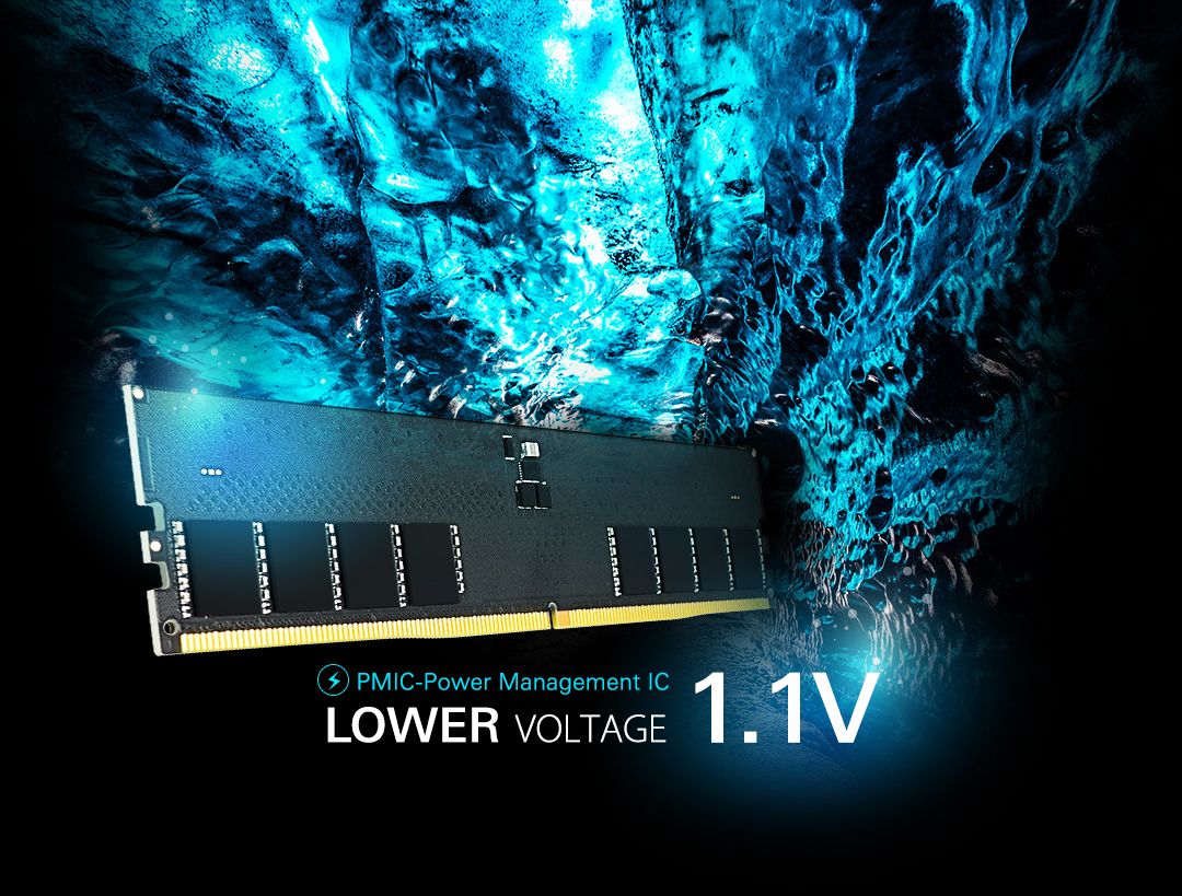 Nawet przy całej swojej dodatkowej mocy, ten moduł DDR5 jest lepszy od swojego poprzednika dzięki regulacji napięcia w module. Układ scalony zarządzania energią (PMIC) zmniejsza obciążenie kontroli płyty głównej i skutkuje niższym napięciem 1,1 V w porównaniu z 1,2 V dla pamięci DDR4, co zapewnia jeszcze mniejsze zużycie energii.